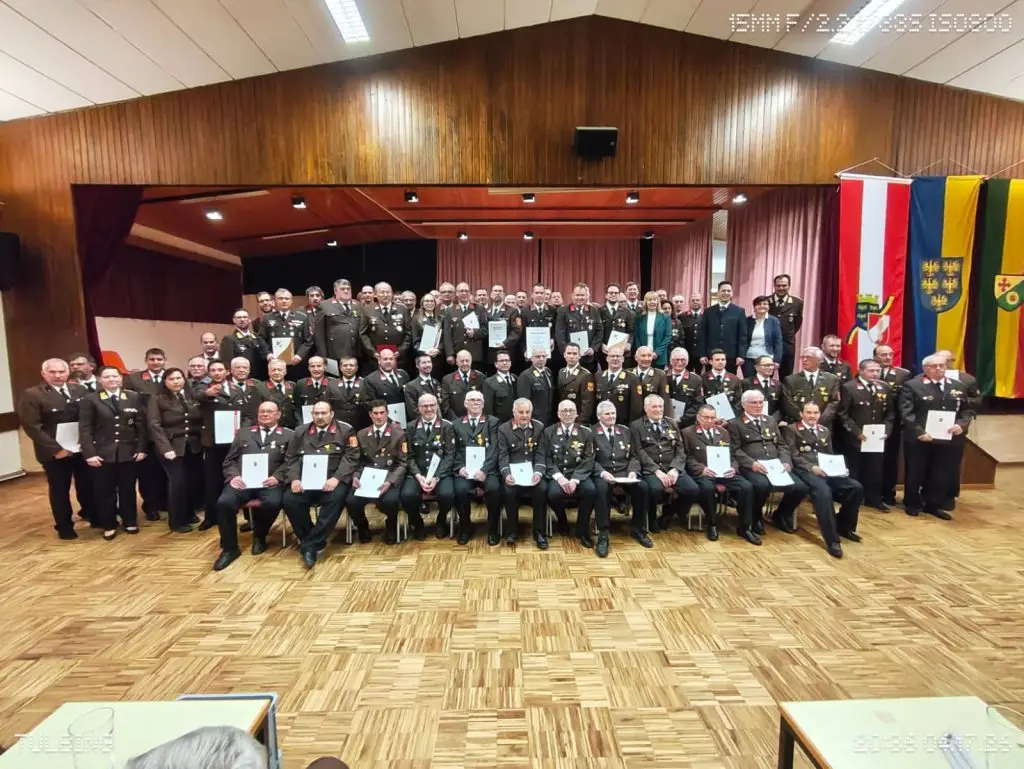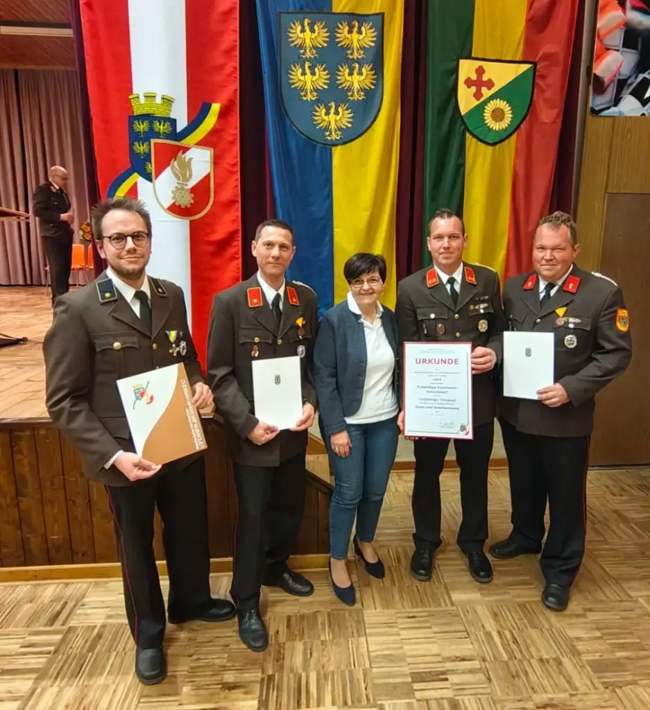 Zusätzlich erhielten SB Florian Paar und BI Markus Pferschinger das Ehrenzeichen für vieljährige verdienstvolle Tätigkeit auf dem Gebiet des Feuerwehr- und Rettungswesens (25 Jahre), und V Tobias Haas wurde das Verdienstabzeichen des NÖ Landesfeuerwehrverbandes 3. Klasse in Bronze verliehen.