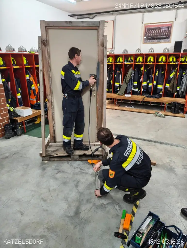Beim Übungsmontag stand diesmal das Thema „Öffnungstechnik bei Gefahr im Verzug“ am Plan. Hier wurde der schnelle und professionelle Zugang zu verschlossenen Objekten trainiert und vorgezeigt.