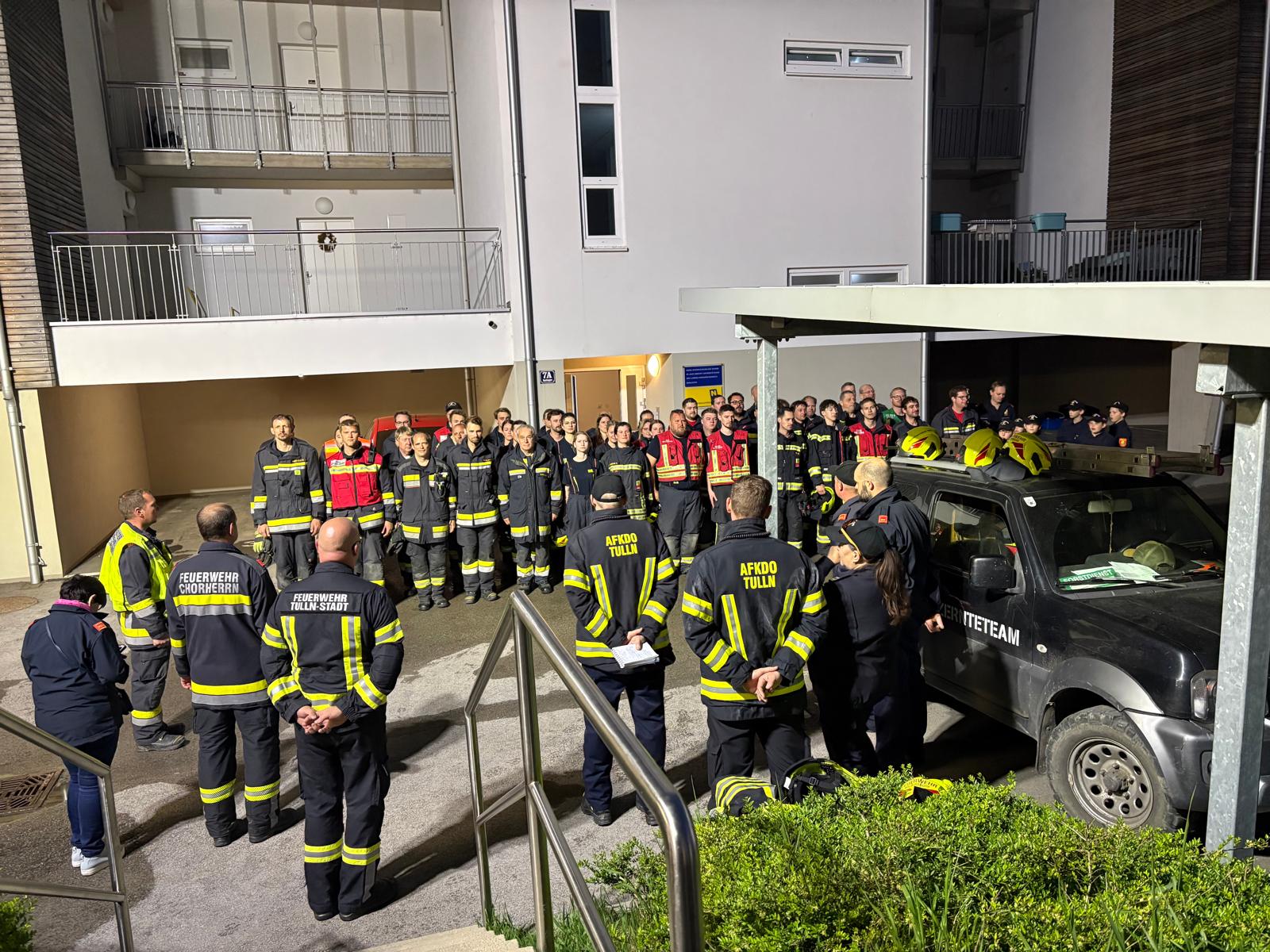 Mehrere Atemschutztrupps gingen umgehend zur Personen- und Brandsuche ins Gebäude vor und konnten rasch erste Personen retten. Die Feuerwehr Stadt Tulln unterstützte die Rettungsmaßnahmen mit der Drehleiter und brachte Personen sicher vom Dach in Sicherheit.